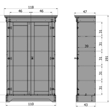 - Afmetingen (hxbxd): 191x118x47 cm