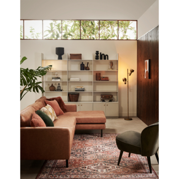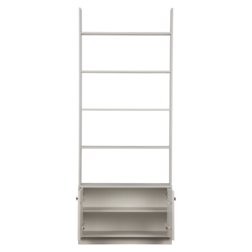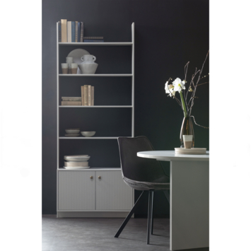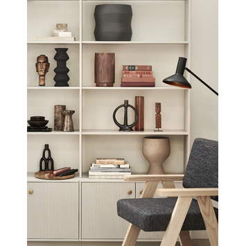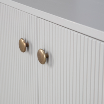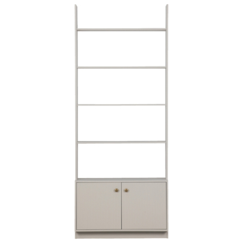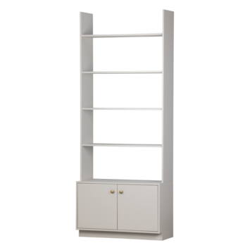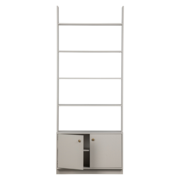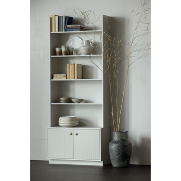 De open legplanken aan de bovenzijde bieden volop ruimte om accessoires of boeken mooi te presenteren. Onderin is de kast voorzien van twee deuren met goudkleurige knopjes. Achter deze deuren bevinden zich vier legplanken, elk met een afmeting van 75 x 33 x 20 cm (lxbxh), waardoor je beschikt over veel opbergruimte. Zo combineert de Madu kast een decoratieve uitstraling met praktische functies.