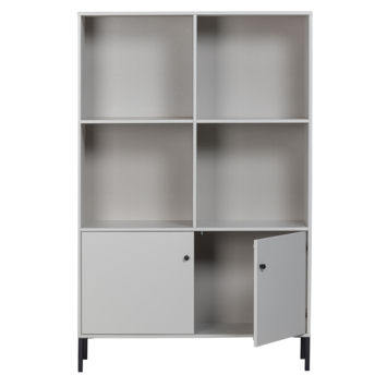De kast beschikt over meerdere vakken en twee deuren, waardoor je zowel spullen mooi kunt presenteren als uit het zicht kunt opbergen. Elk vak heeft een afmeting van 47 x 38 x 44 cm (lxbxh), waardoor er voldoende ruimte is voor boeken, accessoires of opbergmanden. Met een totale hoogte van 160 cm, breedte van 107 cm en diepte van 39 cm past de Xam kast perfect in de woonkamer, werkkamer of hal.