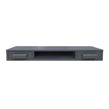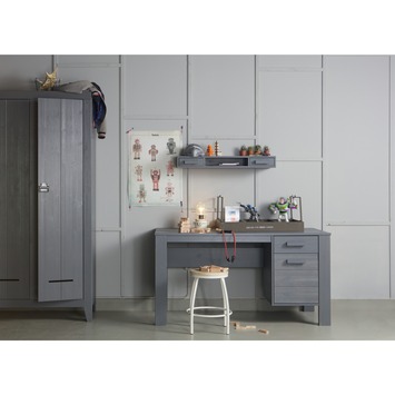 WOOOD wandplank Dennis, breedte 85 cm, met 2 laden, is een onderdeel van de serie Dennis. De serie Dennis is verkrijgbaar in twee kleuren grijs, betongrijs of staalgrijs. Kies voor één van de kleuren of maak een spannende mix van beide kleuren grijs. Creëer de perfecte slaapkamer met deze serie Dennis. De wandplank met 2 laden onderscheidt zich door het eigentijdse, strakke design en is gemaakt van grenen, gelakt in de kleur staalgrijs. De afmetingen van de wandplank Dennis zijn (hxbxd): 10x85x22 cm. De wandplank Dennis wordt gemonteerd geleverd.