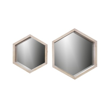 WOOOD wandspiegel Feline is, door z’n aparte zeshoekige (hexagon) vormgeving, een sieraad in huis. De fraaie blank houten lijst maakt deze wandspiegel veelzijdig en past in elke woonstijl. Je kunt deze wandspiegel op meerdere manieren ophangen met een punt naar beneden of hang hem horizontaal. De afmetingen zijn (hxbxd): 49x42x4,5 cm. De wandspiegel Feline is ook in een kleiner formaat verkrijgbaar, afmetingen 37x32x4,5 cm. Als je beide maten combineert krijg je een uniek effect op je wand.