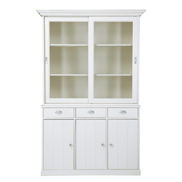 De WOOOD winkelkast Solo wit is een ideale opberger met 2 schuifdeuren. De deuren hebben metalen inbouwgrepen en zijn voorzien van gehard veiligheidsglas met daarachter 2 gefolieerde legplanken. Aan de onderzijde zitten 3 lades met metalen komgrepen en 3 dichte deuren voorzien van metalen deurknoppen met achter elke deur 1 gefolieerde legplank. De kast is gemaakt van massief wit gelakt grenen gecombineerd met gefolieerde legplanken en heeft een geborstelde afwerking ondergaan. Bij het borstelen van grenen meubelen wordt de nerf sterk geaccentueerd en ontstaat een doorleefd oppervlak. De binnenzijde van de boven- en onderkast is wit gelakt. De kast heeft de afmetingen (bxhxd): 124x200x46 cm. Dit artikel wordt als bouwpakket geleverd en is makkelijk te monteren met behulp van de bijgeleverde montage instructie.