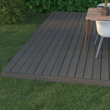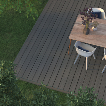 De planken zijn gemaakt van volledig gerecyclede grondstoffen. Hierdoor leg je een stevig terras aan met materiaal dat opnieuw is gebruikt.