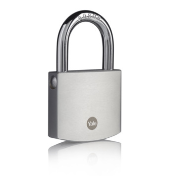 Yale 60mm zwaar massief messing hangslot met geharde stalen beugel en mat chroom finish. Sluiten door dicht te klikken en te openen met sleutel. Dubbele sluiting voor extra beveiliging. Inclusief 3 sleutels. Type Y120B/60/135/1