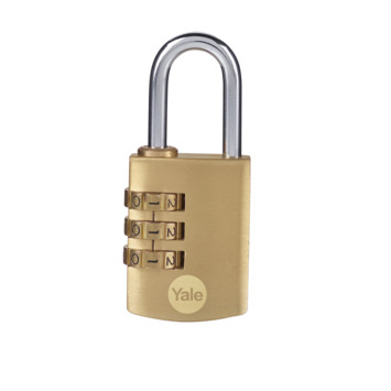 Yale 30 mm standaard stevig messing huis combinatie hangslot en herinstelbaar cijferhangslot. Met verchroomd stalen beugel, verpakt per stuk.