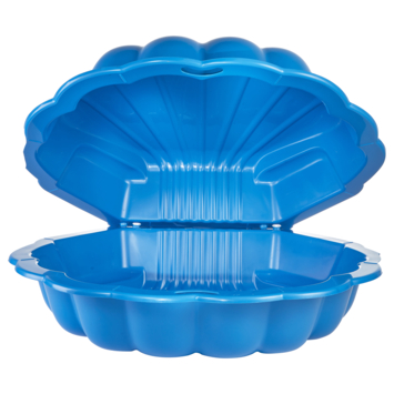 Dit is een zandbak in de vorm van een schelp. De zandbak is blauw en zorgt voor een hoop speelplezier in de buitenlucht. Na het spelen kun je gemakkelijk de zandbak afsluiten door de deksel erop te leggen. De zandbak is ook te vullen met water om er lekker in te badderen.