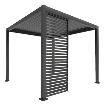 Ons lamellenzijpaneel voor de Classic en Deluxe pergola is een functionele en stijlvolle oplossing om de zijkanten van uw pergola af te sluiten. Het paneel bestaat uit vaste lamellen, waarmee je stijlvol extra privacy en beschutting creëert. De lamellen zijn gemaakt van aluminium, waardoor ze bestand zijn tegen verschillende weersomstandigheden en lang meegaan. Bovendien biedt de lamellenstructuur voldoende ventilatie om een briesje door te laten, zodat u kunt genieten van frisse lucht terwijl u beschermd bent tegen de zon en harde wind. Het paneel is verkrijgbaar in verschillende maten om te passen bij uw pergola en wordt geleverd met alle benodigde bevestigingsmiddelen voor een snelle installatie. Voor optimale bescherming en privacy kunt u de gehele zijkant dichtmaken. Maar, u kunt de panelen ook in een hoek plaatsen. Indien u de gehele zijkant wilt dichtmaken, heeft u 3 panelen nodig. Met de lamellenzijpanelen maakt u van uw pergola een praktische en comfortabele buitenruimte waar u het hele jaar door van kunt genieten.