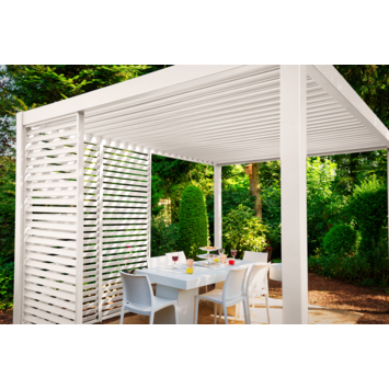 De lamellenzijpanelen bieden de mogelijkheid om in privacy te zitten. Het biedt een geborgen en beschermd gevoel in de pergola.