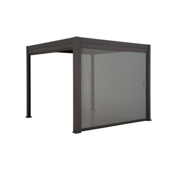 Het pull down zijscherm voor de pergola Classic en Deluxe is een praktische oplossing om de zon te weren en bescherming te bieden tegen insecten. Dit specifieke screen is gemaakt van duurzaam textileen, wat ervoor zorgt dat het screen bestand is tegen weersinvloeden. Het scherm is eenvoudig te bedienen door simpelweg het scherm naar beneden te trekken (of omhoog te duwen). Hierdoor kan het scherm ook op elke gewenste hoogte gepositioneerd worden. De begeleidingsrails, aan beide zijkanten van het scherm, zorgen ervoor dat het scherm altijd stabiel en betrouwbaar blijft. Doordat het scherm gemaakt is van textileen biedt het een uitstekende bescherming tegen UV-stralen, waardoor het ideaal is om te gebruiken op zonnige dagen. Daarnaast biedt het screen ook de nodige privacy, waardoor je in alle rust kan genieten van je tuin en terras. Het pull down zijscherm is verkrijgbaar in verschillende afmetingen, waardoor eventueel alle kanten van de pergola kunnen worden voorzien van een scherm. Doordat het scherm speciaal is ontworpen voor de pergola, wordt deze volledig geïntegreerd.