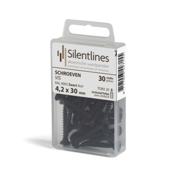 Zwarte schroeven t.b.v. lattenwand voor binnen - 30 stuks incl. bitje