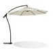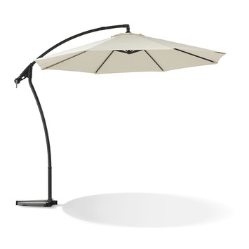 Met de zweefparasol Florida geniet je van een ruime schaduwplek met een diameter van 300 cm en een hoogte van 260 cm. Deze parasol is gemaakt van metaal en heeft een spatwaterbestendig polyester doek van 180 gram per vierkante meter. Hij biedt UV-bescherming van factor 30 en beschikt over een handig uitklapmechanisme. Voor stabiliteit is minimaal 100 kg aan voetgewicht nodig, wat niet inbegrepen is. Let bij aanschaf van een voetstuk goed op de diameter van de parasolstok, deze is 4,8 cm. Deze zweefparasol is een praktische keuze voor elke tuin.