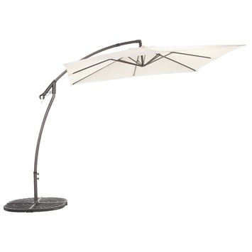 Zweefparasol Freeport ecru d250 cm is een vierkante, in hoogte verstelbare parasol. Het doek is gemaakt van polyester, ecru van kleur en biedt een uv-bescherming van factor 30. Zo zit je beschermd tegen de allerfelste zonnestralen toch lekker buiten. Het fijne van een zweefparasol is bovendien dat de parasolvoet buiten de schaduwruimte geplaatst kan worden. Hierdoor heb je een vrij schaduwvlak zodat je, bijvoorbeeld met een tuinset of kinderbadje, geen rekening hoeft te houden met een parasolstok. De metalen delen van deze parasol zijn gemaakt van roestvrij staal. Gespetter, nat worden of een regenbuitje is dus geen probleem, de parasol blijft roestvrij. Tot slot is de parasol in hoogte verstelbaar en 180 graden draaibaar. Zo kan je de parasol bijstellen als de zon hoger of lager komt de staan. Kortom, de Zweefparasol Freeport ecru d250 cm is een fijne parasol voor iedereen die vaak of langdurig buiten zit. Zweefparasol Freeport ecru d250 cm wordt geleverd exclusief parasolvoettegels. Parasolvoettegels zijn nodig om de zweefparasol op zijn plaats te houden. Deze zijn los verkrijgbaar. Zweefparasol Freeport ecru d250 cm is 250 centimeter breed en 250 centimeter diep.