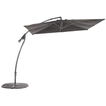 Zweefparasol Freeport zwart 250x250 cm is een vierkante, in hoogte verstelbare parasol van 250 bij 250 centimeter. Het zwarte doek is gemaakt van polyester en biedt een uv-bescherming van factor 30. Zo zit je beschermd tegen de allerfelste zonnestralen toch lekker buiten. Het fijne van een zweefparasol is bovendien dat de parasolvoet buiten de schaduwruimte geplaatst kan worden. Hierdoor heb je een vrij schaduwvlak zodat je, bijvoorbeeld met een tuinset of kinderbadje, geen rekening hoeft te houden met een parasolpaal. De metalen delen van deze parasol zijn gemaakt van roestvrij staal. Gespetter, nat worden of een regenbuitje is dus geen probleem, de parasol blijft roestvrij. Tot slot is de parasol in hoogte verstelbaar en 180 graden draaibaar. Zo kan je de parasol bijstellen als de zon hoger of lager komt de staan. Kortom, zweefparasol Freeport zwart 250x250 cm is een fijne parasol voor iedereen die veel, vaak of langdurig buiten zit. Zweefparasol Freeport zwart 250x250 cm wordt geleverd exclusief parasolvoettegels. Parasolvoettegels zijn nodig om de zweefparasol op zijn plaats te houden. Deze zijn los verkrijgbaar.