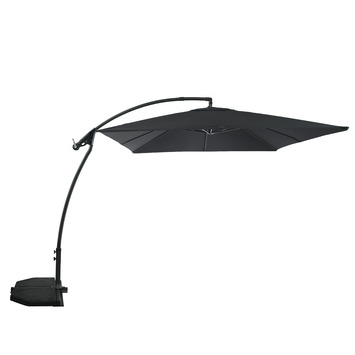 De Zweefparasol Orlando Zwart 250x250 cm is een vierkante, in hoogte verstelbare parasol. Het doek is gemaakt van polyester en biedt uv-bescherming van factor 30. Als je dus tijdens hete zomerdagen niet meer in de zon wil zitten, biedt deze moderne parasol de gewenste bescherming. Het fijne van een zweefparasol is bovendien dat de parasolvoet buiten de schaduwruimte geplaatst kan worden. Hierdoor heb je een vrij schaduwvlak zodat je, bijvoorbeeld met een tuinset of kinderbadje, geen rekening hoeft te houden met een parasolpaal. De metalen delen van deze parasol zijn gemaakt van roestvrij staal. Ook tijdens regenbuien biedt deze parasol jou bescherming. Zweefparasol Orlando wordt geleverd exclusief parasolvoettegels. Parasolvoettegels zijn nodig om de zweefparasol op zijn plaats te houden. Je hebt minimaal 30 kg nodig voor deze parasol en deze zijn los verkrijgbaar. De Zweefparasol Orlando is 250 centimeter hoog, 250 centimeter breed en 250 centimeter diep.