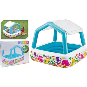 Compact kinderzwembad met levendige afbeeldingen van het leven in de oceaan.