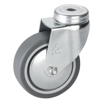 Dit zwenkwiel is gemaakt van TPE en heeft daarom een zacht loopvlak. Hierdoor is hij geschikt voor op een kwetsbare ondergrond zoals parket of laminaat (controleer altijd het effect op de vloer voor gebruik). Door zwenkwielen onder jouw meubels te plaatsen kun je deze gemakkelijk verplaatsen. Het zwenkwiel glijlager met boutgat maximaal 50 kg 75 mm heeft een diameter van 75mm. De maximale draagkracht bedraagt 50 kilogram. Kortom, dit zwenkwiel is een goede keuze voor op kwetsbare vloeren.