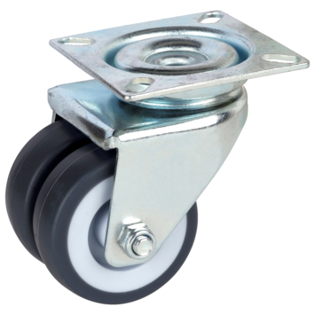 Dit dubbele zwenkwiel is gemaakt van PVC en TPE en heeft daarom een zacht loopvlak. Hierdoor is hij geschikt voor op een kwetsbare ondergrond zoals parket of laminaat (controleer altijd het effect op de vloer voor gebruik). Door zwenkwielen onder jouw meubels te plaatsen kun je deze gemakkelijk verplaatsen. Het dubbel zwenkwiel TPE met plaat 50mm 80kg beschikt over een plaat van 60x60mm en heeft een dubbele kogellager in de draaikrans. De diameter van de zwenkwiel is 50mm. De maximale draagkracht bedraagt 80 kilogram. Kortom, dit zwenkwiel is een goede keuze voor op kwetsbare vloeren.