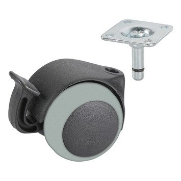 Zwenkwiel TPE met rem en plaatbevestiging Ø 40 mm max. 30 kg