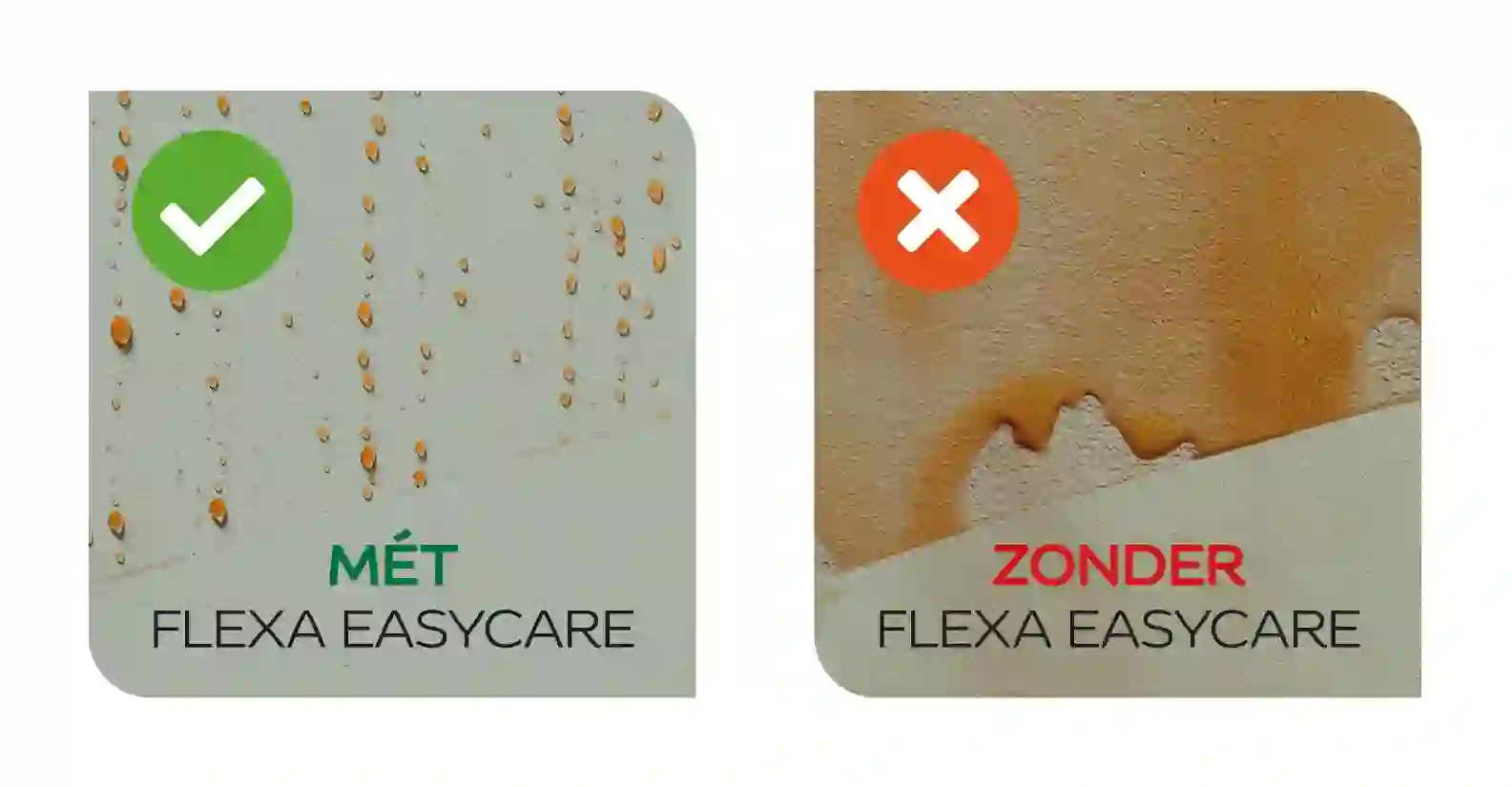 Flexa Easycare Muren stoot vlekken af waardoor ze niet in de verf trekken. Hierdoor kunnen vlekken zoals sinaasappelsap, ketchup, thee en chocolademelk optimaal verwijderd worden zonder dat verf beschadigt. Des te sneller je de vlek verwijdert, des te gemakkelijker dat gaat.