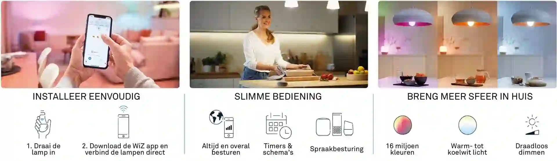 In dit pakket vind je twee slimme WiZ LED-spots. Breng sfeer in huis met warm- tot koelwit licht ...