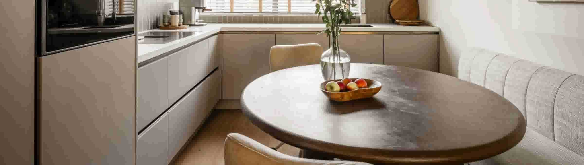 Jouw woonkamer is een plek waar je tot rust komt. Bijvoorbeeld als je gezellig samen luncht of bruncht met je gezin. Als je wat uurtjes achter je laptop werkt aan de eettafel. Of als je ’s avonds op de bank ploft voor een serie. Een basiskleur in je woonkamer zorgt meteen voor rust. Je interieur voelt minder druk, omdat kleuren elkaar niet overstemmen.