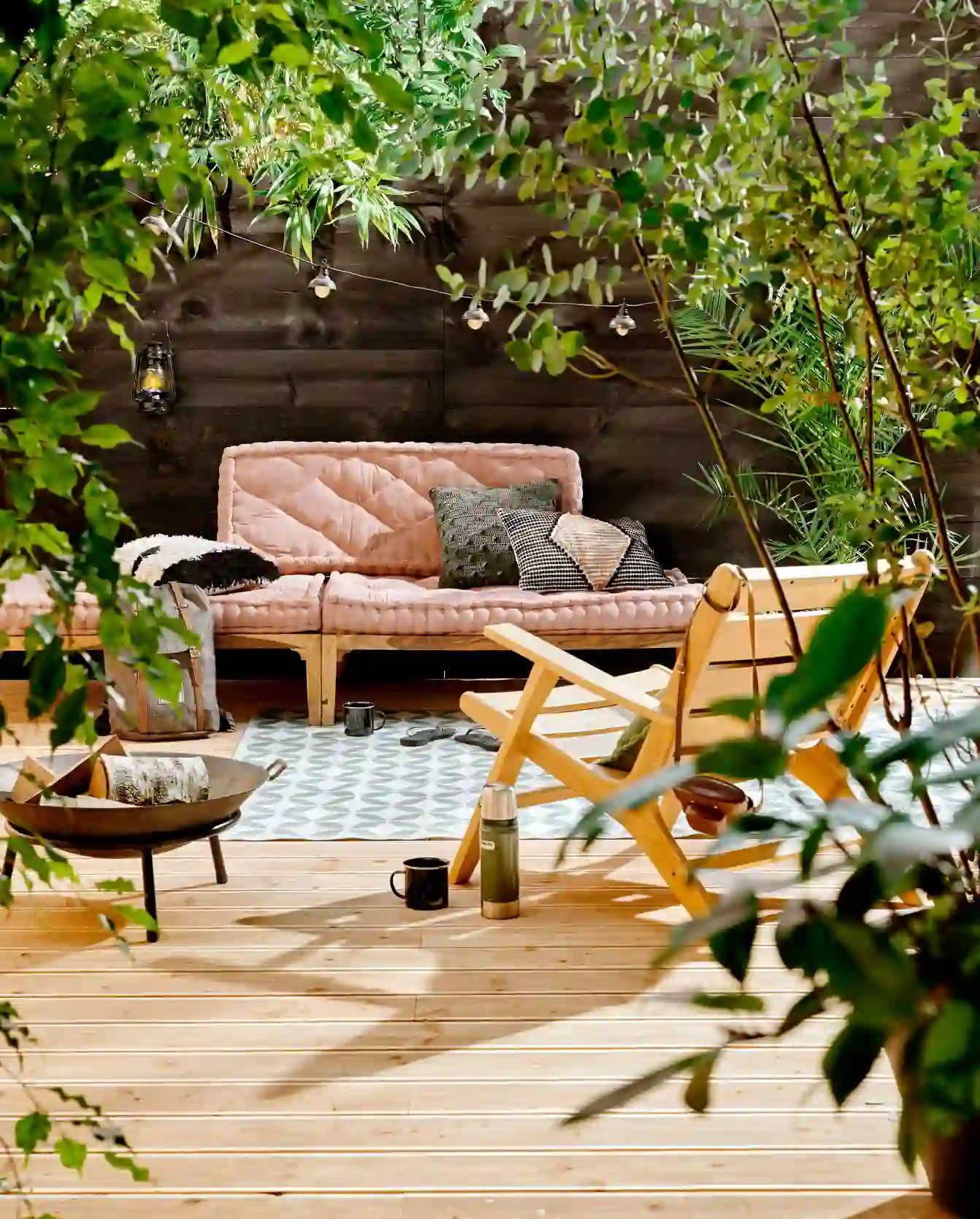 Alsof je vanuit je huis zó een stadspark in stapt: dat is de sfeer van jouw Festival Hangout-tuin. Die nonchalante, hippe sfeer zet je neer met een zorgvuldig uitgekozen mix van meubelen en materialen.
