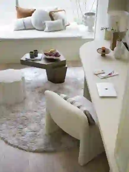 "Het toevoegen van verschillende vormen en texturen aan je interieur kan op verschillende manieren worden aangepakt. Het kan grootschalig zijn, zoals bijvoorbeeld de ronde muur in onze woning en ons keukeneiland met ronde vormen. Maar voor een speels effect hoef je zeker niet altijd groots uit te pakken. Zelfs met kleine toevoegingen kun je een groot verschil maken. Als je het leuk vindt om zelf iets te creëren, begin dan met een bijzettafeltje of een dienblad in een organische vorm. Ik begon ook ooit met kleinere projecten. Door gewoon te beginnen en veel te oefenen leer je steeds meer."
