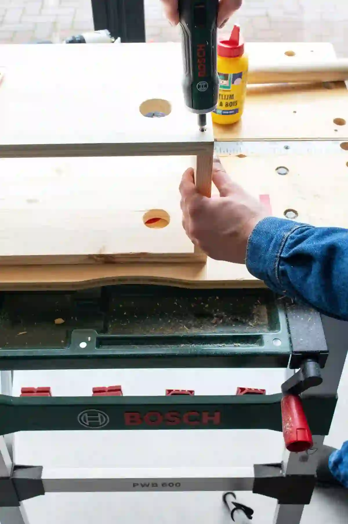 Met de lintadapter kun je gemakkelijk en nauwkeurig afstanden meten tot 1,50 meter. Deze adapter heb ik gebruikt voor het opmeten van mijn planken. Voor het wandrek heb ik een breedte aangehouden van 50 cm. Met de lintadapter heb ik dit vervolgens opgemeten op de plank en het op deze lengte gezaagd. Ideaal!