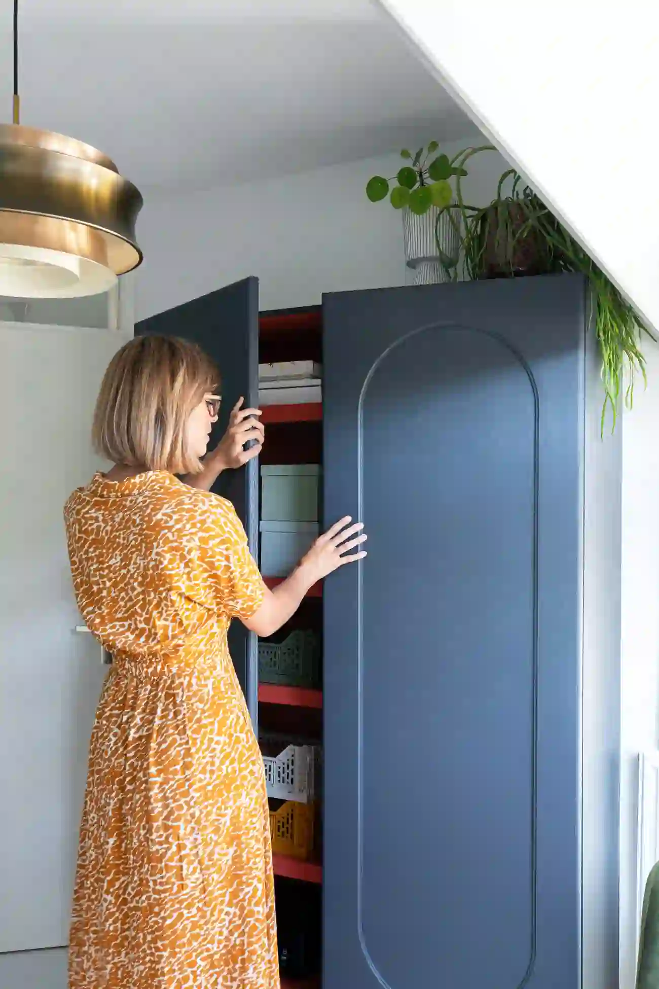 Ik liep al best lang met dit project in mijn hoofd en nu we het eenmaal hebben gerealiseerd ben ik er zo blij mee! Ik kan je vertellen: het geeft zoveel meer rust, zo’n handige opbergkast op je werkplek. En praktisch kan dus echt wel stijlvol zijn… Wil je wat meer fun in zo’n kast, gebruik dan onverwachte items zoals een vaas of een bloempot om bijvoorbeeld kwasten of potloden in te bewaren. En je printpapier staat toch ook net wat gezelliger in een mooie mand of gekleurde krat? Hopelijk heb ik jullie met deze DIY opbergkast kunnen inspireren en wie weet zelfs kunnen aanzetten om zelf aan zo’n DIY project te beginnen!