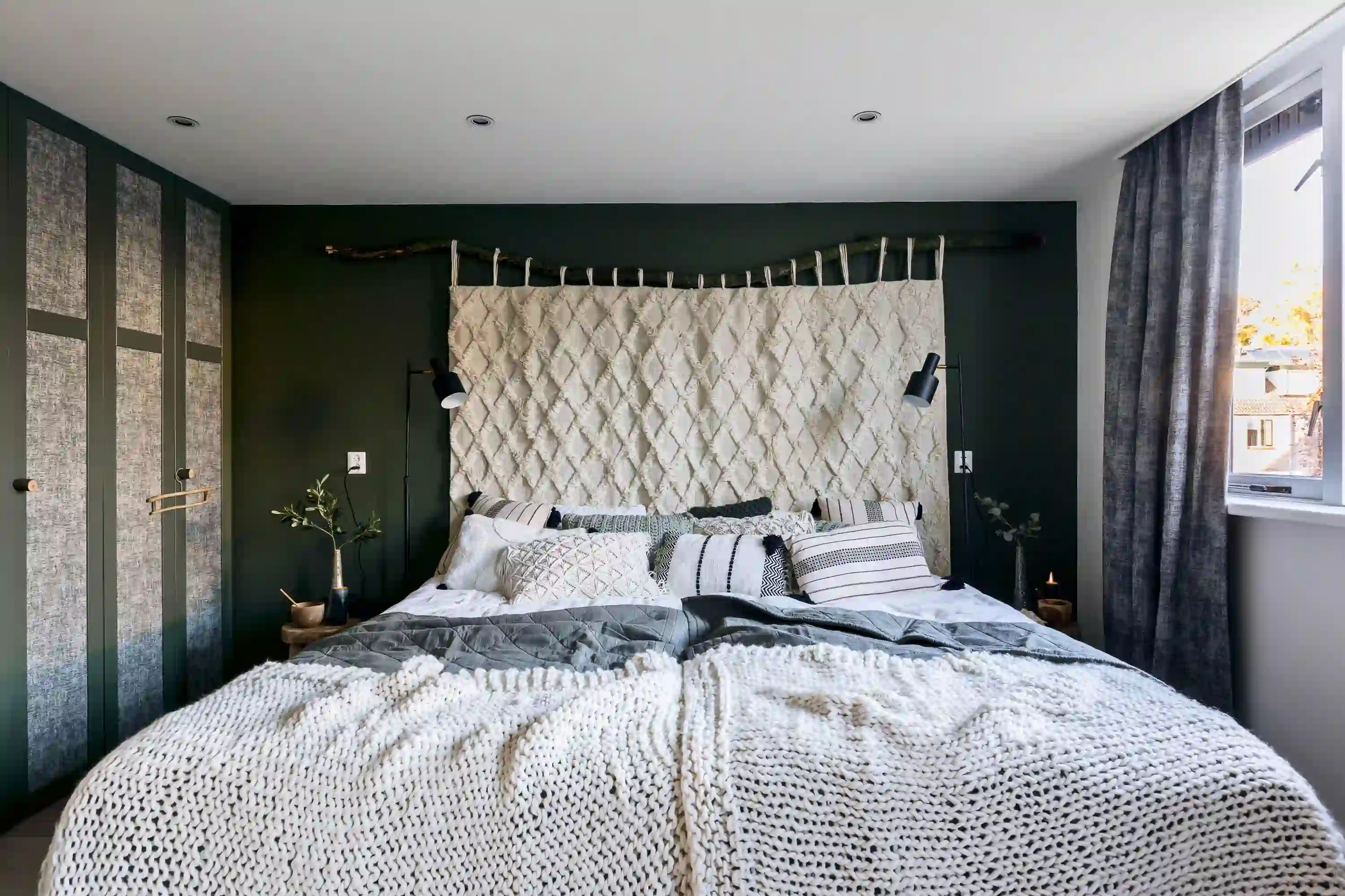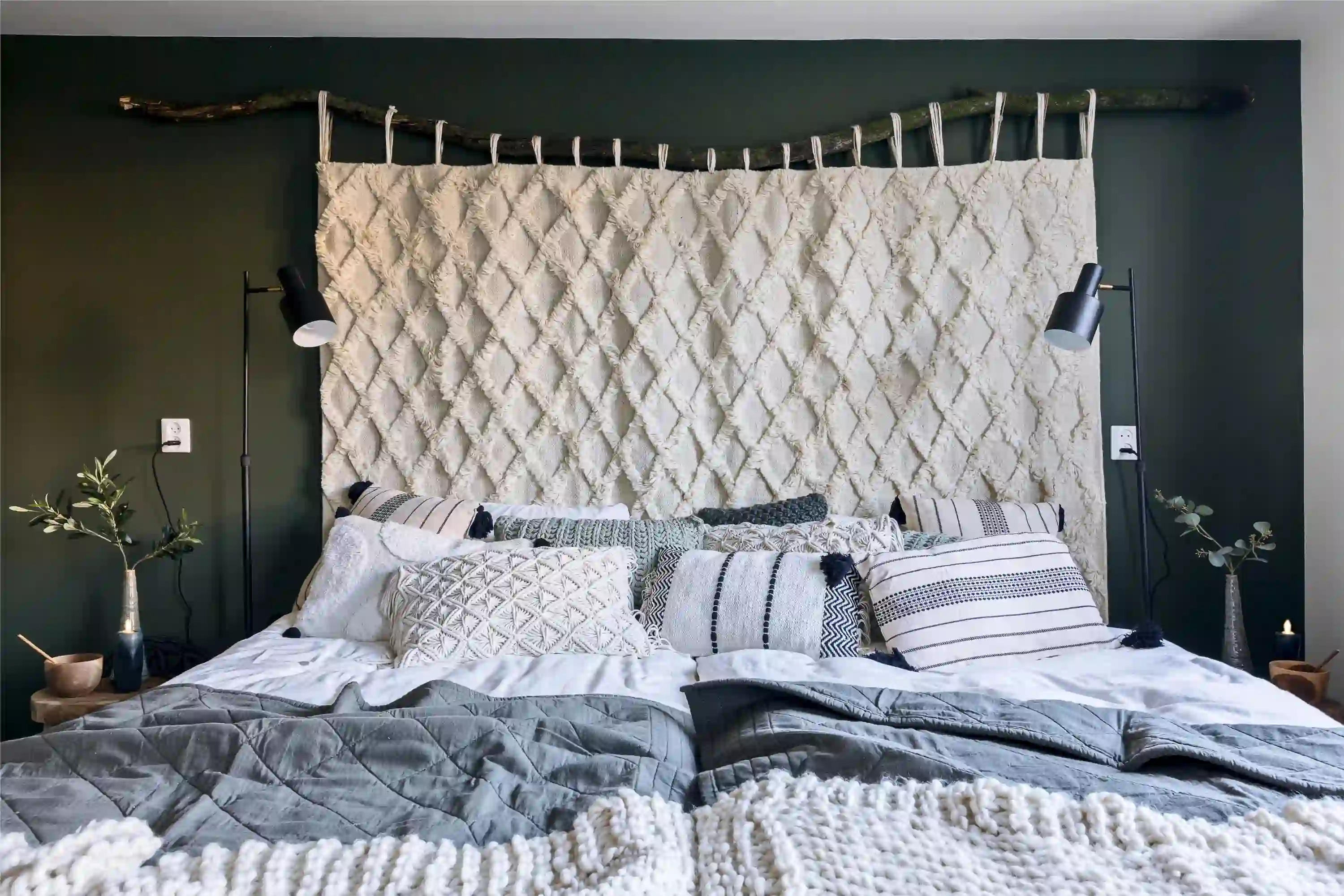 Een wandkleed als hoofdbord achter je bed hangen. Niets leuker dan producten op een andere manier toepassen! In dit DIY project maken we van een vloerkleed een wandkleed en hangen we deze aan een grote tak. Zo functioneert het als wanddecoratie achter je bed! Je kunt dit wandkleed natuurlijk ook aan kale muur in huis hangen om een warme look te creëren. Het staat erg mooi in een botanisch interieur!