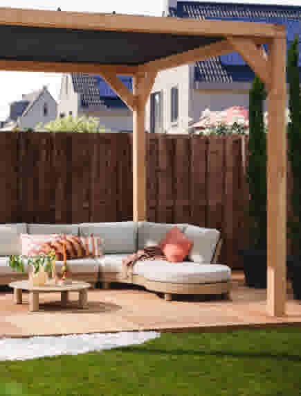Hoewel de Nederlandse zon natuurlijk minder fel schijnt dan de Zuid-Europese, is het toch ook aan te raden om voor fijne schaduwplekken te zorgen in jouw mediterrane tuin. Maak bijvoorbeeld een pergola om fijn onder te kunnen zitten. Kies voor natuurlijke vormen en vermijd rechte hoeken. Een (half)rond terras past namelijk perfect binnen deze stijl.