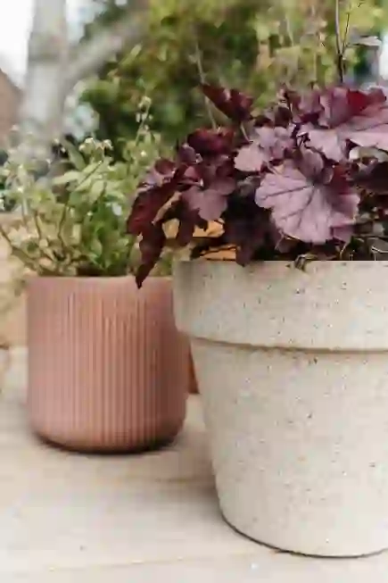 Als je een balkon of dakterras hebt kun je je eenjarigen ook heel goed in een pot zetten! De hoogte van de eenjarige soort die je er in zet moet niet meer dan twee keer zo hoog zijn als de pot zelf, dan houd je de verhouding in balans. Een pot van 30 of 40 cm is vaak het fijnst om mee te werken. Onderin de pot gebruiken we hydrokorrels om het vocht beter te reguleren, maar je kunt ook grind of een kapot gevallen pot gebruiken. Het idee is dat het vocht dat niet snel genoeg weg kan in die onderste laag blijft staan, daardoor blijven de wortels beschermd. Ik doe een laagje van ongeveer 5 a 10 centimeter van die hydrokorrels in de pot, dat is voldoende. Vul de pot verder tot de rand met bio potgrond.