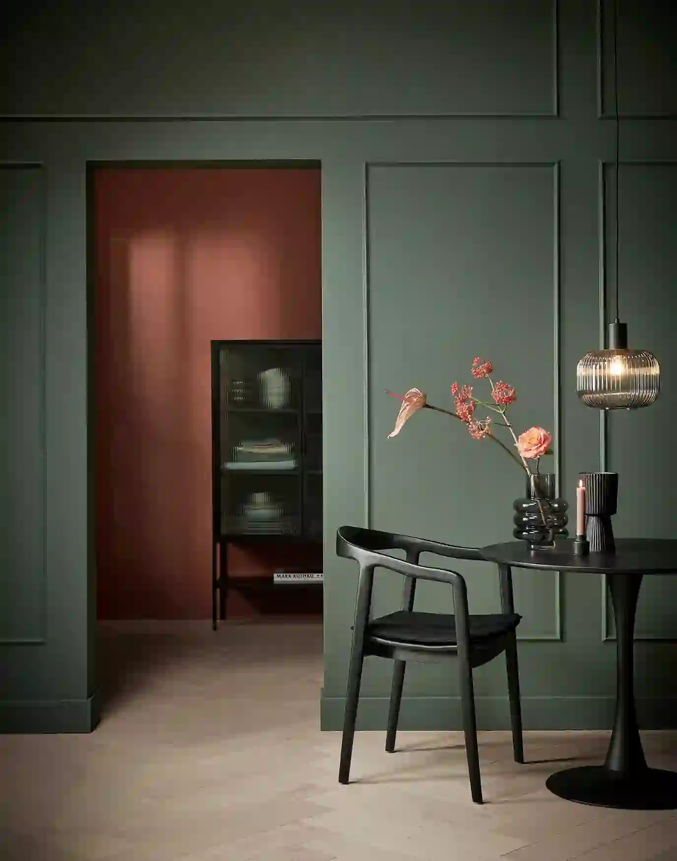 De groene rijke kleur geeft elke ruimte in je huis een klassieke uitstraling, en is perfect te combineren met zwarte meubels, zoals een zwarte eetkamerstoelen en een zwarte eettafel. Blijf bij ronde vormen als je kiest voor een ronde eettafel en hang dan ook een ronde hanglamp boven de tafel, bijvoorbeeld een glazen hanglamp. Accessoires zijn de finishing touch, dat is een feit. Maak het niet te druk en zet gelijke vormen of gelijke kleuren bij elkaar voor een mooi geheel. Vind je de ronde glazen vaas van rookglas ook niet fantastisch? Bekijk alle vazen van Karwei.