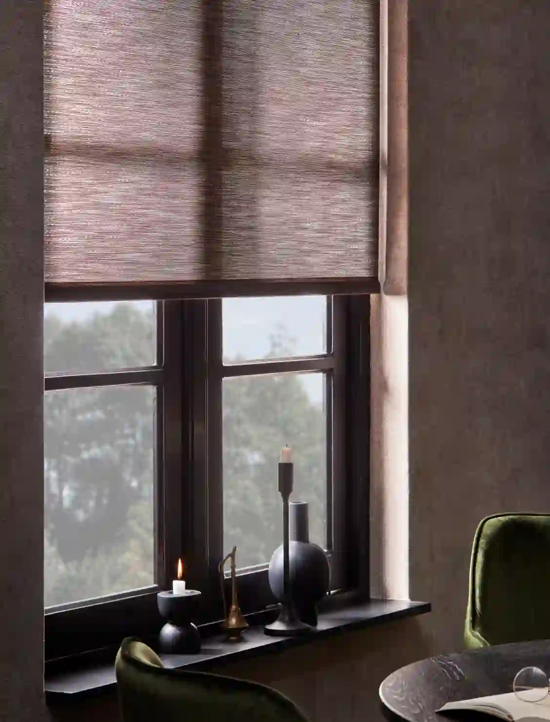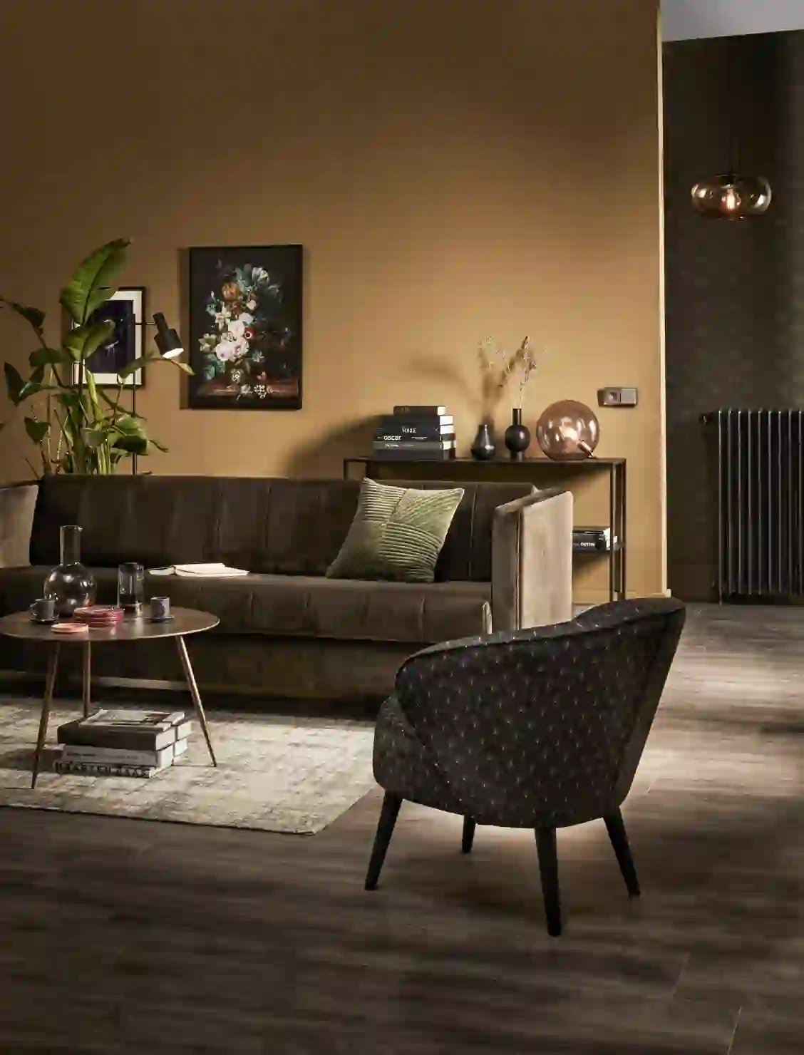 Diepe donkere kleuren geven je huis een chique touch. Okergeel, olijfgroen, bruin en blauw zijn de woontrend voor een luxe uitstraling in je huis. Deze chique kleuren, zoals olijfgroen zorgen voor een gevoel van warmte en rijkdom. Wie wil er nou niet in luxe leven? Creëer deze rijke omgeving in je eigen woonkamer en breng warme kleuren aan op de muur. Laat deze donkere kleuren terugkomen in meubels, accessoires, rolgordijnen, kleden, plaids, kussens, de vloer, schilderijen aan de muur of in het behang.