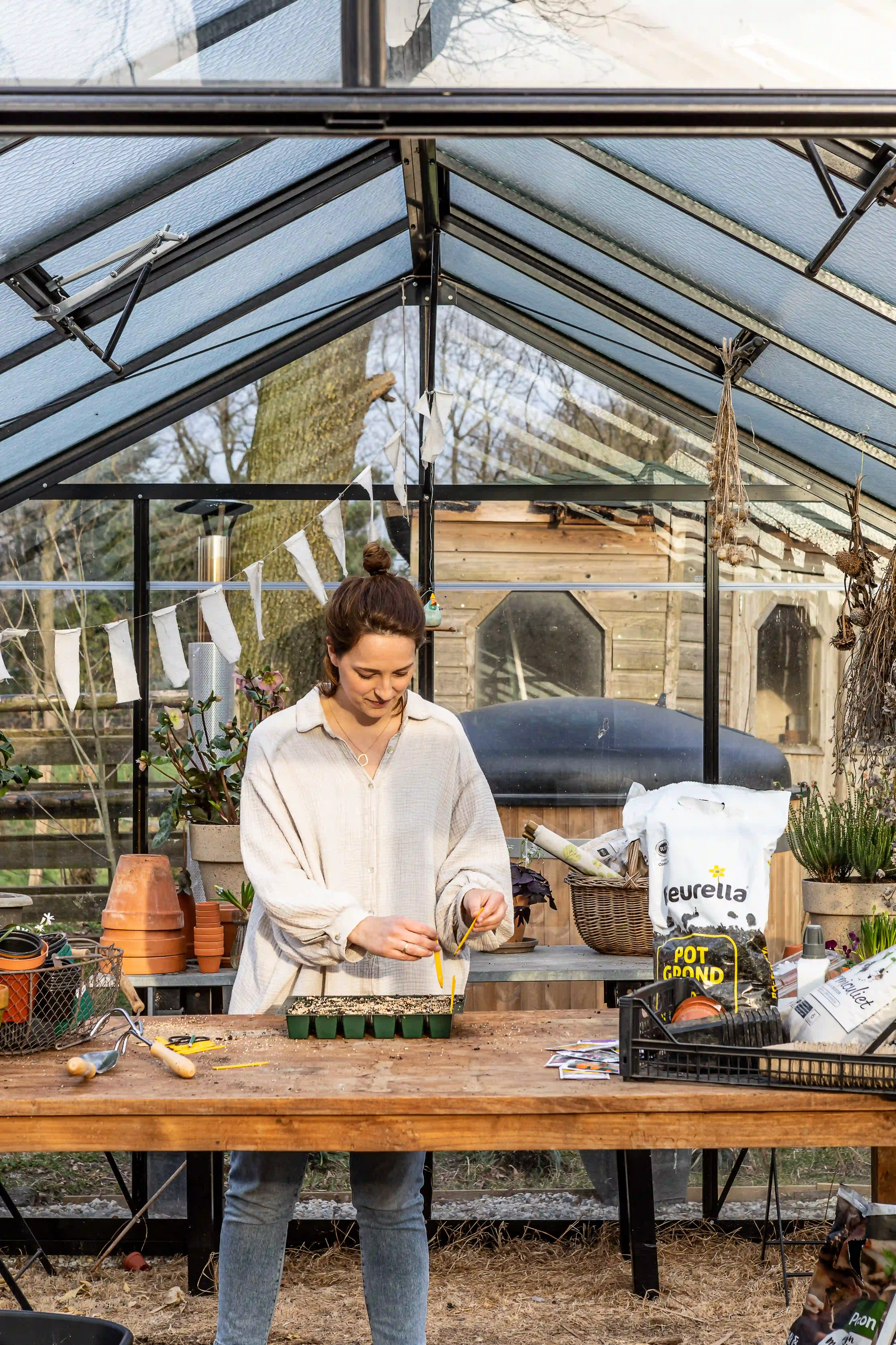 De koude kas die Tanja maakt is een mooie plek om voor te zaaien als je binnen weinig ruimte hebt. Door het glas wordt het overdag goed warm en licht in de kas, maar zet de kas open als het er te warm wordt. Het hoeft geen sauna te zijn! De zaden zullen in een koude kas minder snel ontkiemen omdat het er kouder is, maar dat is prima. Zaden die te snel groeien omdat ze warm staan zijn ook minder sterk, dus langzaam en gestaag groeien is juist goed. Liever dus iets kouder dan te warm!